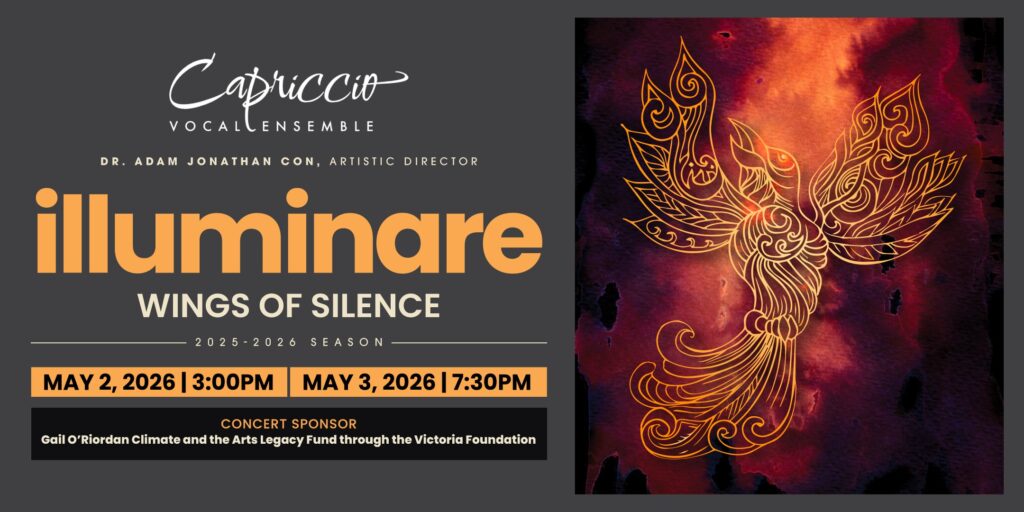 Wings of Silence features Christopher Tin’s powerful oratorio The Lost Birds—a soaring tribute to the beauty of flight and a lament for vanished species. Joined by the Emily Carr String Quartet, the ensemble partners with the Rocky Point Bird Observatory for a pre-concert panel on art, science, and conservation. Audiences are invited to reflect on humanity’s connection to nature and the urgent call to protect the voices of the earth before they fall silent.